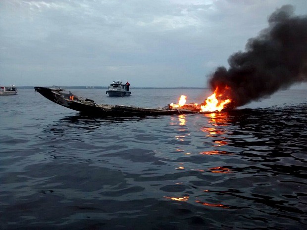 Segundo os bombeiros, a embarcação era uma lancha com dois motores de 250 hp, que media aproximadamente 12 a 15 metros, e estava a deriva. A equipe fluvial da corporação fez o combate parcial das chamas e rebocará a lancha para a comunidade Paricatuba, onde os bombeiros acreditam que podem identificar a quem pertence, porque, segundo os barqueiros que fizeram o primeiro combate, a lancha parecia vir daquele rumo.