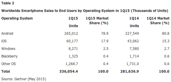 No total, foram vendidos 336 milhões de smartphones no primeiro trimestre de 2015 – um valor 19% superior ao mesmo período do ano passado. Os mercados com maior crescimento foram China, Sul da Europa e Norte da África. Só analisando os países emergentes, o crescimento foi superior ao mundo, alcançando uma marca de 40%.